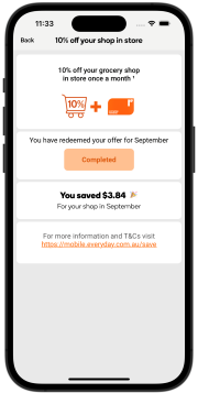 - Scan your Everyday Rewards card at the checkout in store and select if you'd like to redeem the offer.